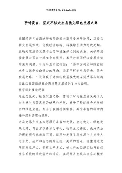 / 【七哥公文】2025年:研讨发言:坚定不移走生态优先绿色发展之路_副本+更多免费公文+VX:QiGeGongWen2024