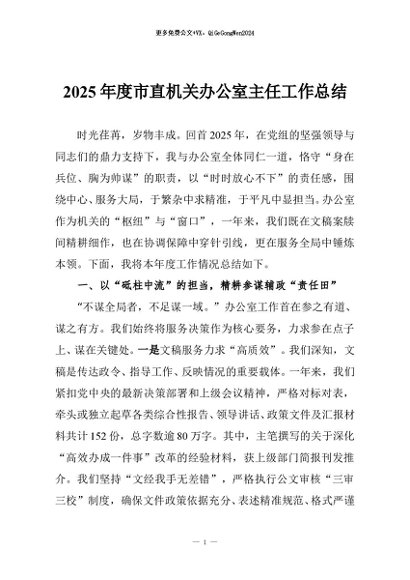 / 【七哥公文】2025年:2025年度市直机关办公室主任工作总结+更多免费公文+VX:QiGeGongWen2024