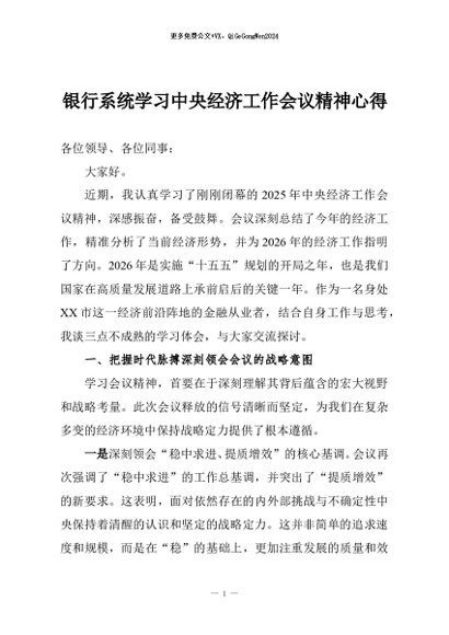 / 【七哥公文】2025年:银行系统学习中央经济工作会议精神心得+更多免费公文+VX:QiGeGongWen2024