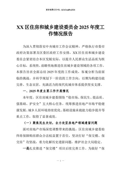 【七哥公文】2025年:XX区住房和城乡建设委员会2025年度工作情况报告+更多免费公文+VX:QiGeGongWen2024