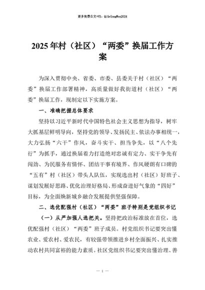 / 【七哥公文】2025年:2025年村(社区)“两委”换届工作方案+更多免费公文+VX:QiGeGongWen2024