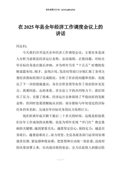 / 【七哥公文】2025年:在2025年县全年经济工作调度会议上的讲话+更多免费公文+VX:QiGeGongWen2024