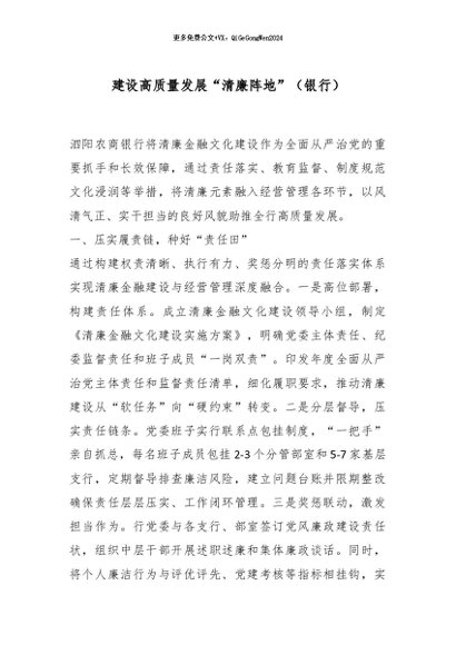 / 【七哥公文】2025年:建设高质量发展“清廉阵地”(银行)_副本+更多免费公文+VX:QiGeGongWen2024