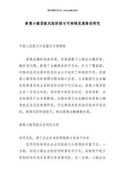 / 【七哥公文】2025年:普惠小微贷款风险防控与可持续发展路径研究_副本+更多免费公文+VX:QiGeGongWen2024