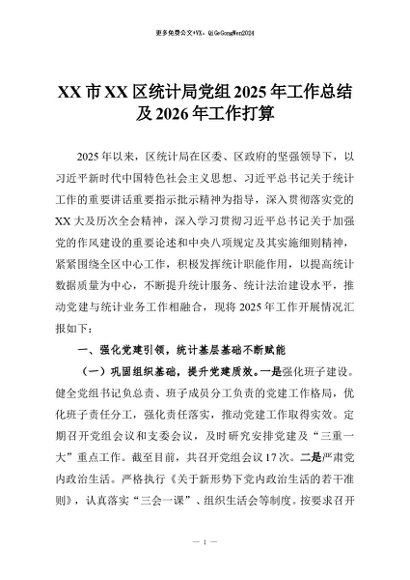 【七哥公文】2025年:XX市XX区统计局党组2025年工作总结及2026年工作打算+更多免费公文+VX:QiGeGongWen2024