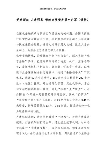 【七哥公文】2025年:党建领航 人才强基 锻造高质量发展生力军(银行)_副本+更多免费公文+VX:QiGeGongWen2024