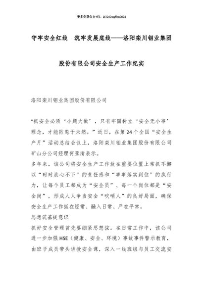 【七哥公文】2025年:守牢安全红线 筑牢发展底线——洛阳栾川钼业集团股份有限公司安全生产工作纪实_副本+更多免费公文+VX:QiGeGongWen2024