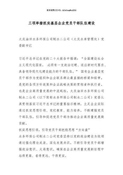/ 【七哥公文】2025年:三项举措抓实基层企业党员干部队伍建设_副本+更多免费公文+VX:QiGeGongWen2024