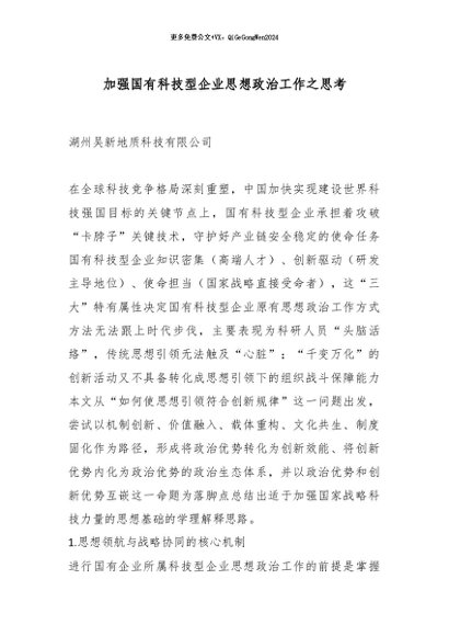 / 【七哥公文】2025年:加强国有科技型企业思想政治工作之思考_副本+更多免费公文+VX:QiGeGongWen2024