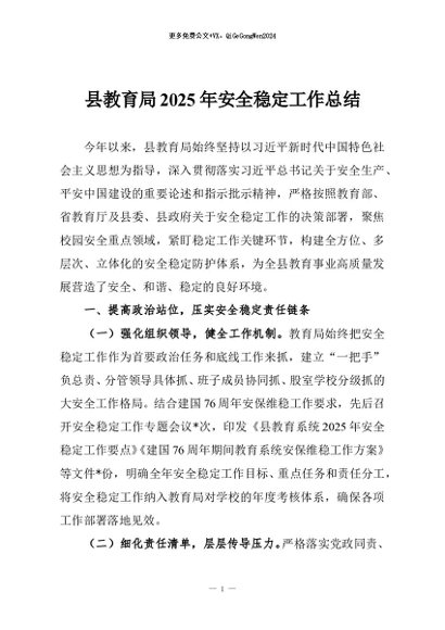 / 【七哥公文】2025年:县教育局2025年安全稳定工作总结+更多免费公文+VX:QiGeGongWen2024
