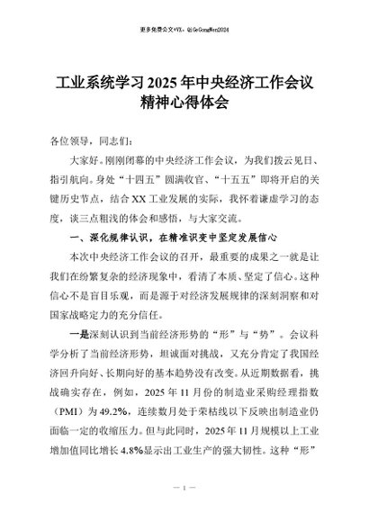 / 【七哥公文】2025年:工业系统学习2025年中央经济工作会议精神心得体会+更多免费公文+VX:QiGeGongWen2024