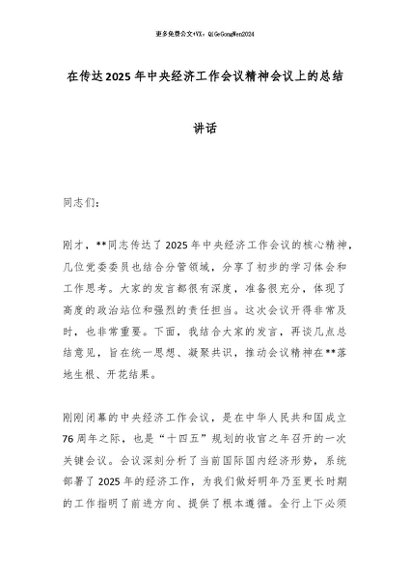 【七哥公文】2025年:在传达2025年中央经济工作会议精神会议上的总结讲话_副本+更多免费公文+VX:QiGeGongWen2024