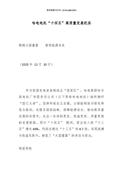 / 【七哥公文】2025年:哈电电机“十四五”高质量发展纪实_副本+更多免费公文+VX:QiGeGongWen2024