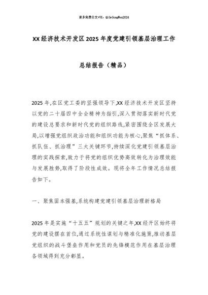 【七哥公文】2025年:XX经济技术开发区2025年度党建引领基层治理工作总结报告(精品)_副本+更多免费公文+VX:QiGeGongWen2024