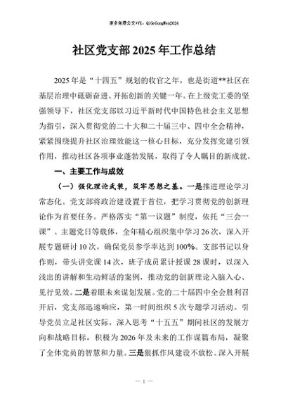 / 【七哥公文】2025年:社区党支部2025年工作总结+更多免费公文+VX:QiGeGongWen2024
