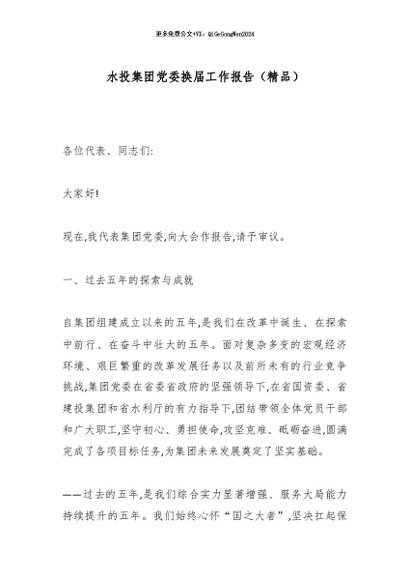/ 【七哥公文】2025年:水投集团党委换届工作报告(精品)_副本+更多免费公文+VX:QiGeGongWen2024