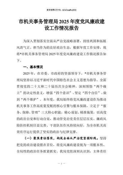 【七哥公文】2025年:市机关事务管理局2025年度党风廉政建设工作情况报告+更多免费公文+VX:QiGeGongWen2024