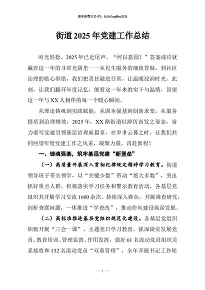 / 【七哥公文】2025年:街道2025年党建工作总结+更多免费公文+VX:QiGeGongWen2024