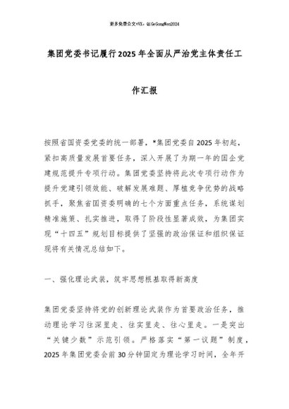【七哥公文】2025年:集团党委书记履行2025年全面从严治党主体责任工作汇报_副本+更多免费公文+VX:QiGeGongWen2024