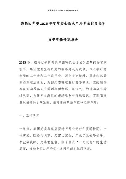 【七哥公文】2025年:某集团党委2025年度落实全面从严治党主体责任和监督责任情况报告_副本+更多免费公文+VX:QiGeGongWen2024