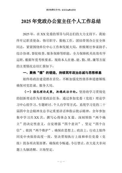 / 【七哥公文】2025年:2025年党政办公室主任个人工作总结+更多免费公文+VX:QiGeGongWen2024