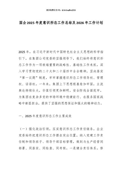 【七哥公文】2025年:国企2025年度意识形态工作总结及2026年工作计划_副本+更多免费公文+VX:QiGeGongWen2024