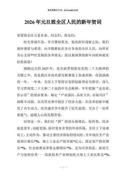 / 【七哥公文】2025年:2026年元旦致全区人民的新年贺词+更多免费公文+VX:QiGeGongWen2024