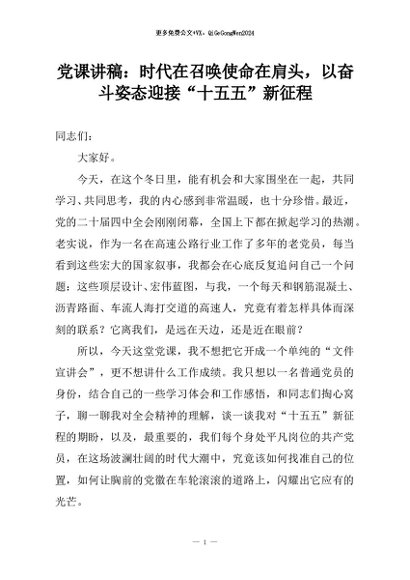 【七哥公文】2025年:党课讲稿:时代在召唤使命在肩头,以奋斗姿态迎接“十五五”新征程+更多免费公文+VX:QiGeGongWen2024