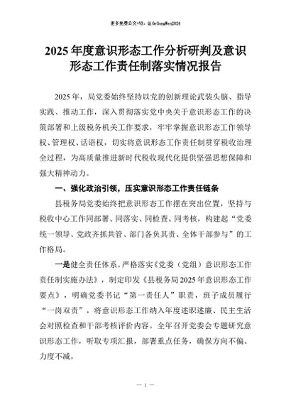 【七哥公文】2025年:2025年度意识形态工作分析研判及意识形态工作责任制落实情况报告+更多免费公文+VX:QiGeGongWen2024