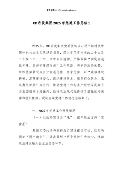 / 【七哥公文】2025年:XX农发集团2025年党建工作总结1_副本+更多免费公文+VX:QiGeGongWen2024