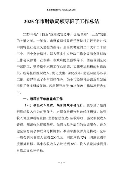 / 【七哥公文】2025年:2025年市财政局领导班子工作总结+更多免费公文+VX:QiGeGongWen2024