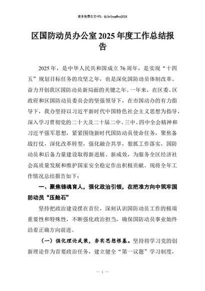 / 【七哥公文】2025年:区国防动员办公室2025年度工作总结报告+更多免费公文+VX:QiGeGongWen2024