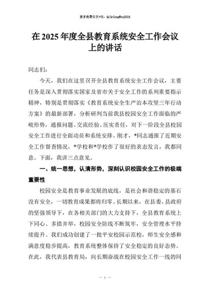 / 【七哥公文】2025年:在2025年度全县教育系统安全工作会议上的讲话+更多免费公文+VX:QiGeGongWen2024