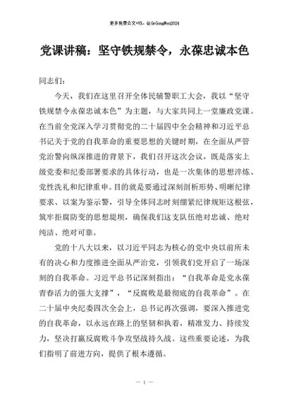 / 【七哥公文】2025年:党课讲稿:坚守铁规禁令,永葆忠诚本色+更多免费公文+VX:QiGeGongWen2024