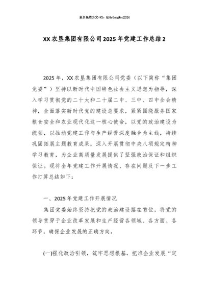 【七哥公文】2025年:XX农垦集团有限公司2025年党建工作总结2_副本+更多免费公文+VX:QiGeGongWen2024