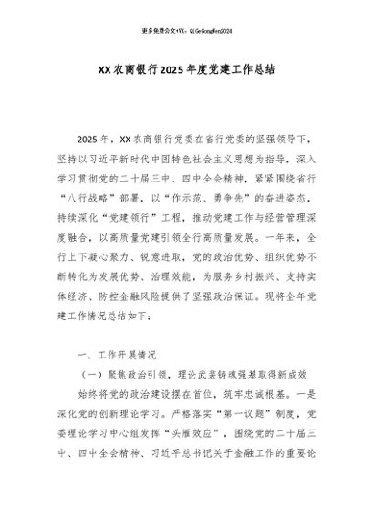 / 【七哥公文】2025年:XX农商银行2025年度党建工作总结_副本+更多免费公文+VX:QiGeGongWen2024