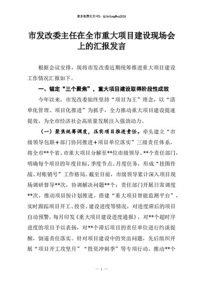 / 【七哥公文】2025年:市发改委主任在全市重大项目建设现场会上的汇报发言+更多免费公文+VX:QiGeGongWen2024
