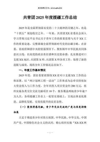 / 【七哥公文】2025年:共青团2025年度援疆工作总结+更多免费公文+VX:QiGeGongWen2024