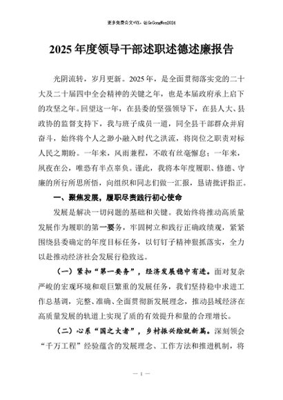 / 【七哥公文】2025年:2025年度领导干部述职述德述廉报告+更多免费公文+VX:QiGeGongWen2024