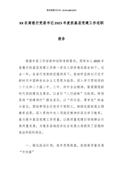 【七哥公文】2025年:XX农商银行党委书记2025年度抓基层党建工作述职报告_副本+更多免费公文+VX:QiGeGongWen2024