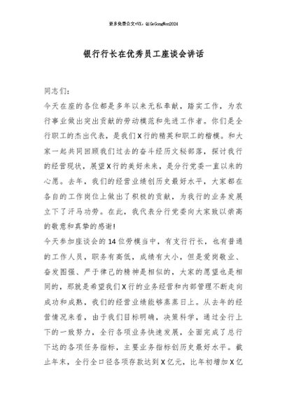 【七哥公文】2025年:银行行长在优秀员工座谈会讲话_副本+更多免费公文+VX:QiGeGongWen2024