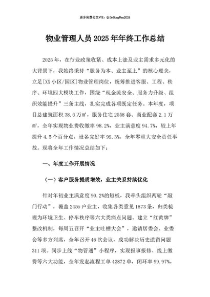 / 【七哥公文】2025年:物业管理人员2025年年终工作总结+更多免费公文+VX:QiGeGongWen2024