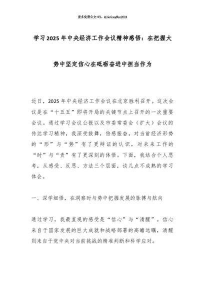 【七哥公文】2025年:学习2025年中央经济工作会议精神感悟:在把握大势中坚定信心在砥砺奋进中担当作为_副本+更多免费公文+VX:QiGeGongWen2024