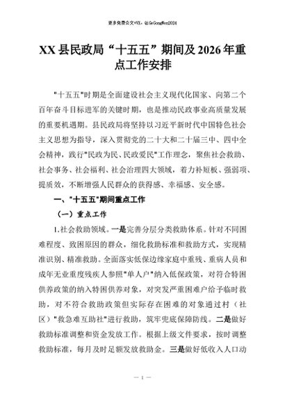 【七哥公文】2025年:XX县民政局“十五五”期间及2026年重点工作安排+更多免费公文+VX:QiGeGongWen2024