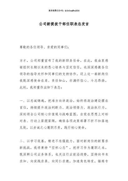 / 【七哥公文】2025年:公司新提拔干部任职表态发言_副本+更多免费公文+VX:QiGeGongWen2024