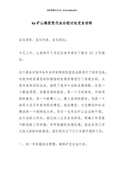 / 【七哥公文】2025年:Xx矿山集团党代会分组讨论发言材料_副本+更多免费公文+VX:QiGeGongWen2024