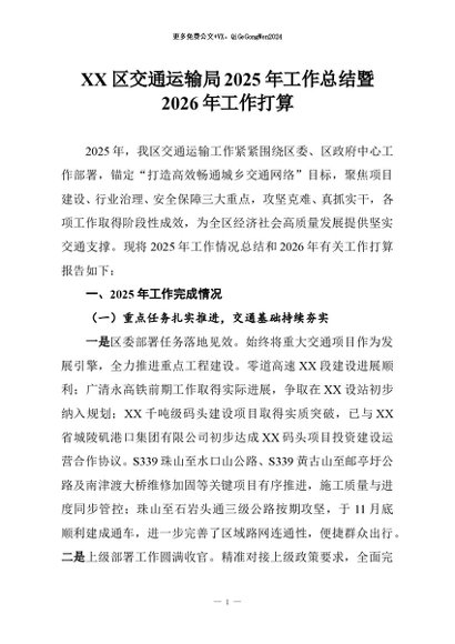 【七哥公文】2025年:XX区交通运输局2025年工作总结暨2026年工作打算+更多免费公文+VX:QiGeGongWen2024