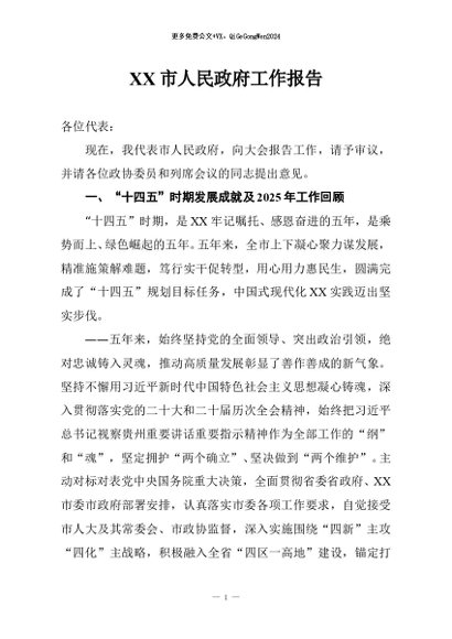 / 【七哥公文】2025年:XX市人民政府工作报告+更多免费公文+VX:QiGeGongWen2024