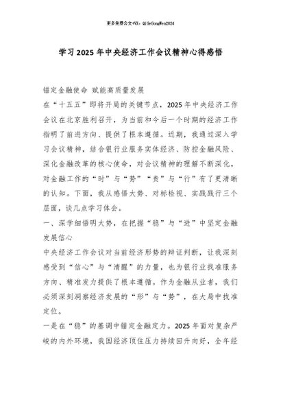 【七哥公文】2025年:学习2025年中央经济工作会议精神心得感悟_副本+更多免费公文+VX:QiGeGongWen2024
