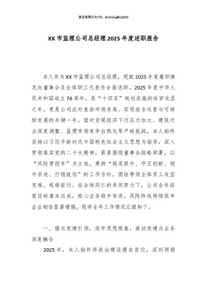 / 【七哥公文】2025年:XX市监理公司总经理2025年度述职报告_副本+更多免费公文+VX:QiGeGongWen2024